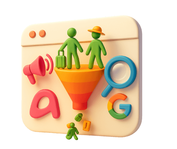 Gestão de tráfego completa em Meta Ads e Google Ads — segmentação avançada para turistas com alto ticket.
